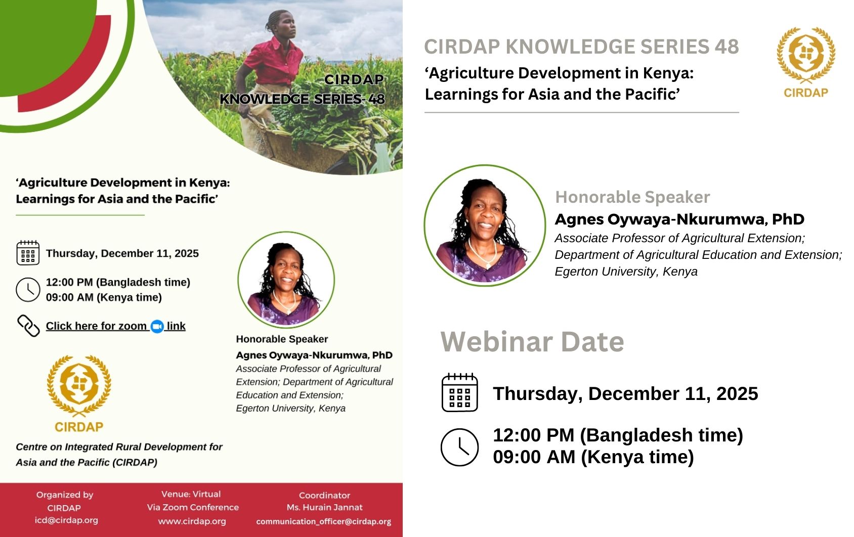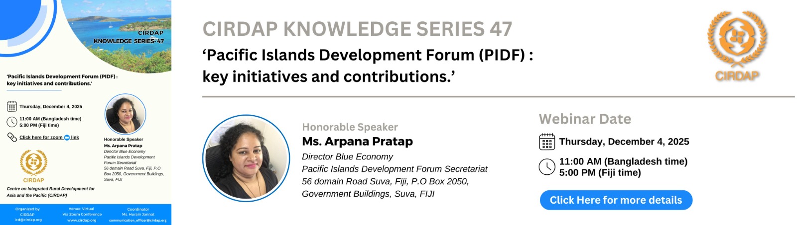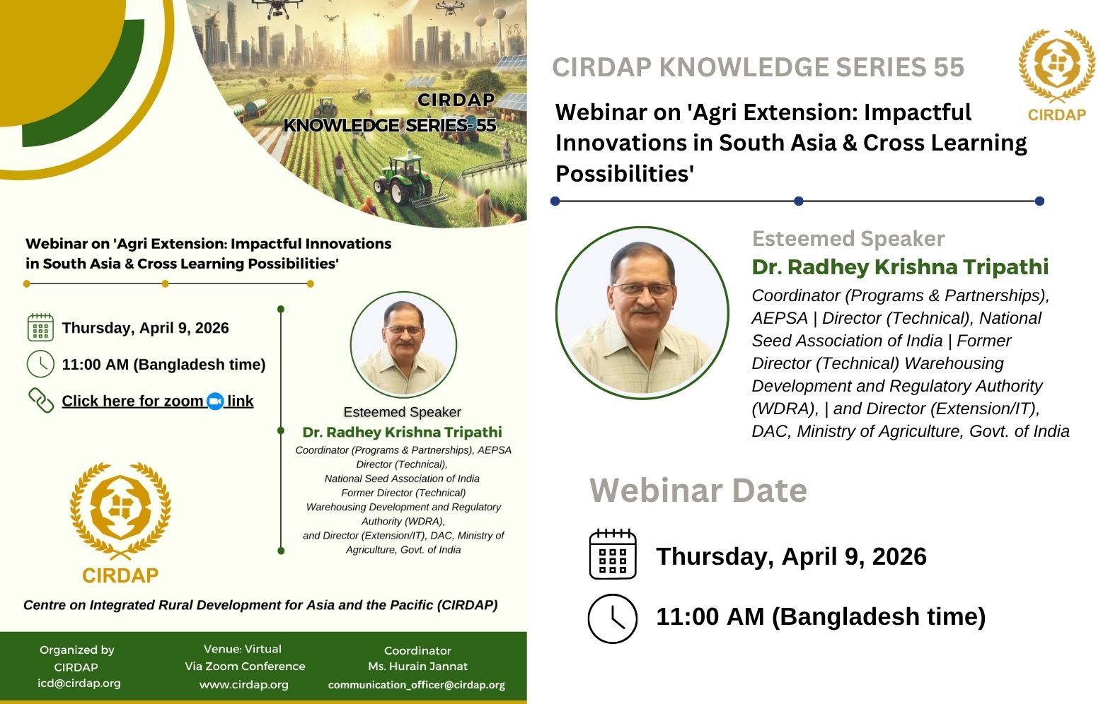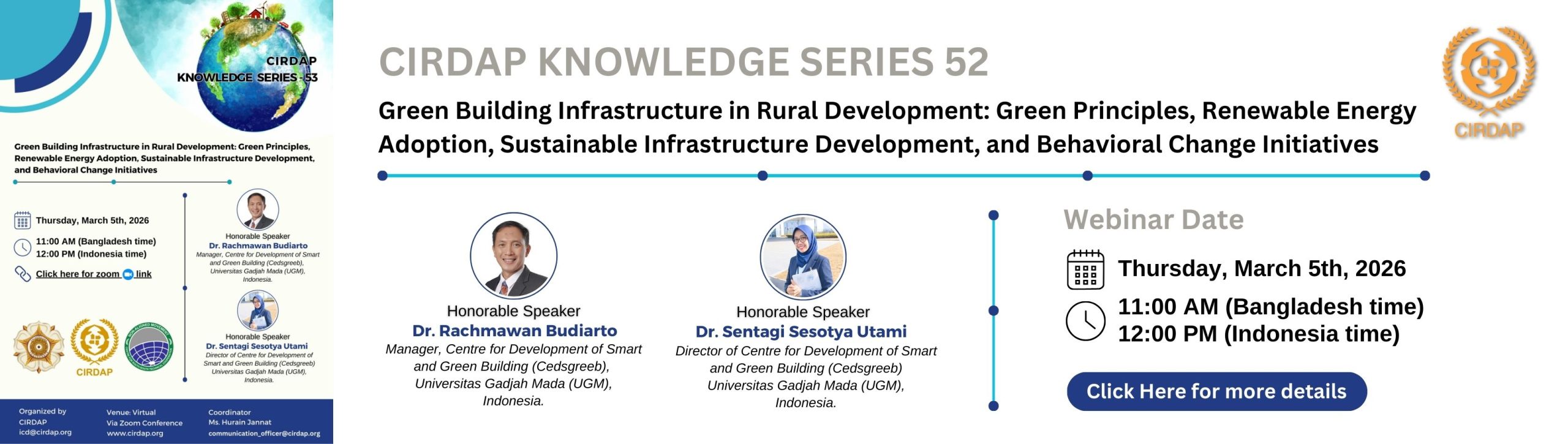 Share the Details: Ms. Hurain Jannat, Communication Officer, CIRDAP | Email: communication_officer@cirdap.org