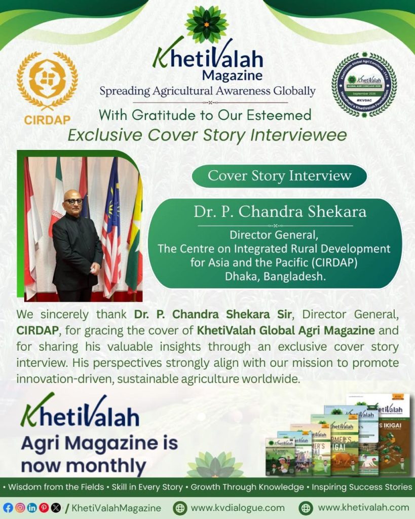 This special edition features the Honourable Director General of CIRDAP, Dr. P. Chandra Shekara, on the cover. In an exclusive cover story interview, Dr. Shekara shares his strategic roadmap for rural transformation, regional cooperation, and the future of inclusive agricultural development across the Asia Pacific region.