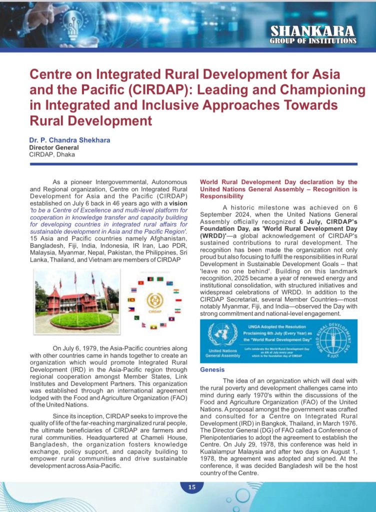 CIRDAP is honored to share that the latest edition of Technikon (January – June 2026, Issue 31), a prestigious half yearly journal by the SK Chaudhary Educational Trust and Shankara Group of Institutions, features an insightful article by our Director General, HE Dr. P. Chandra Shekara.