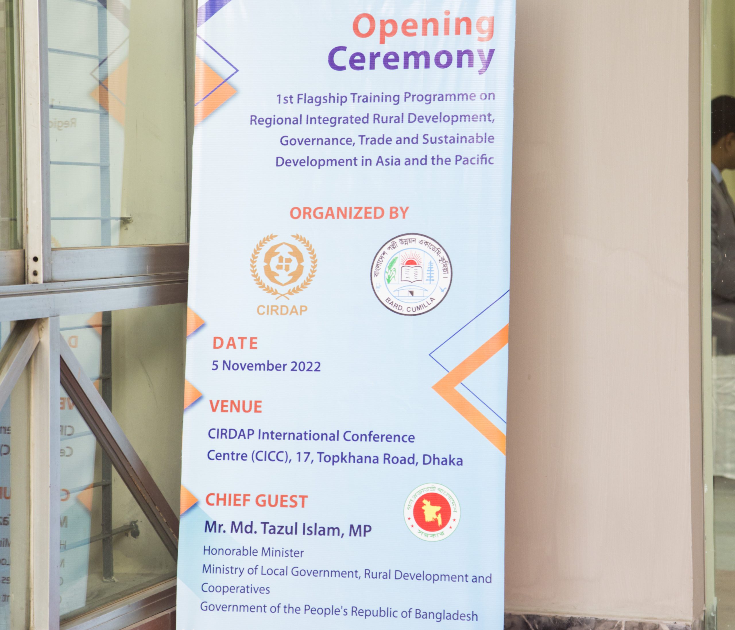 The opening ceremony of the 1st Flagship Training Programme on Regional Integrated Rural Development, Governance, Trade, and Sustainable Development in Asia and the Pacific organized by the Centre on Integrated Rural Development for Asia and the Pacific (CIRDAP) in collaboration with Bangladesh Academy for Rural Development in Cumilla, Bangladesh was held on 5 th November, 2022. The training will be organized from 5 th November 2022 to 24 th November 2022.